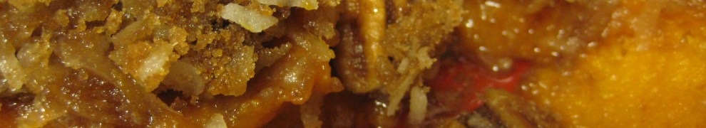 I think marshmallows are so gross, I don’t even want to tell you what gelatin is made from which is what holds those little guys together.  So I took a topping that I love, from fruit crisp, and then modified it slightly for this dish.  You could easily add 1/3 C oats to the topping and call this “health food”; however I didn’t do that.